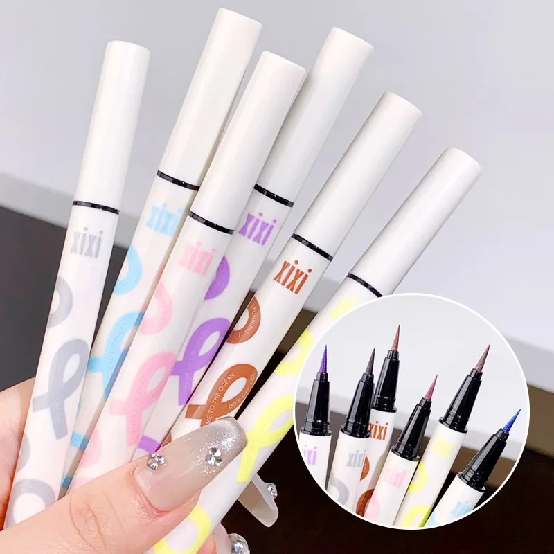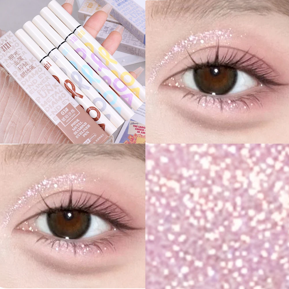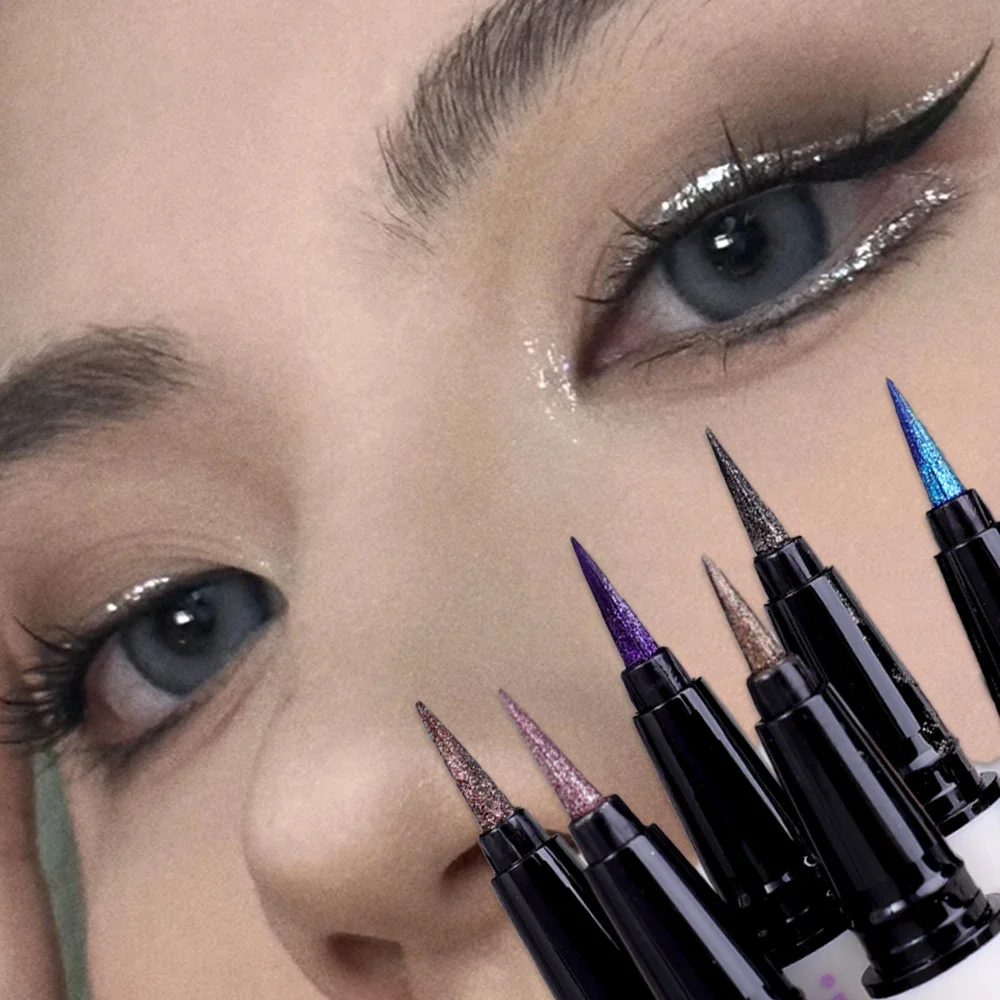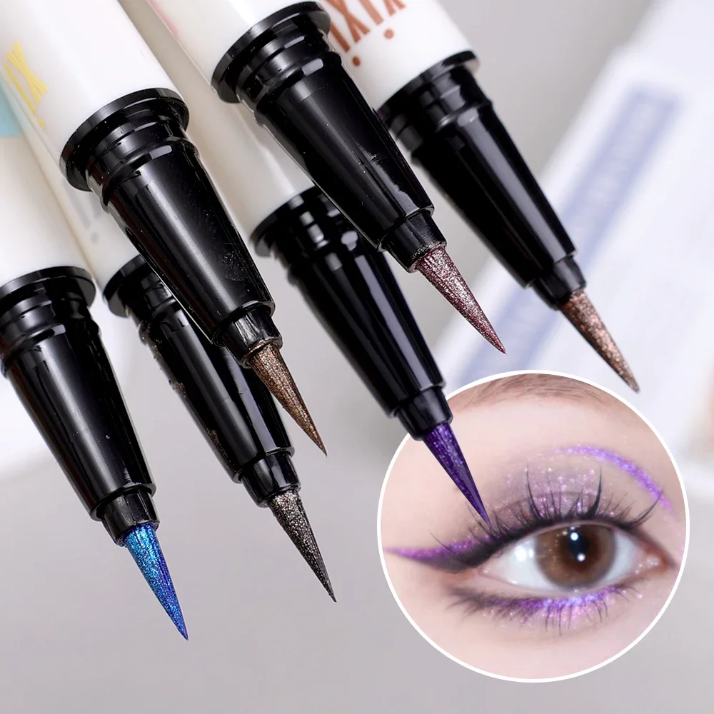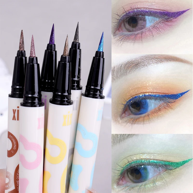 6 Colors Thin Pearlescent Eyeliner Liquid Pencil 3 in 1 Shiny Silkworm Eye Shadow Stick Lasting Smooth Glitter Eyeliner Makeup